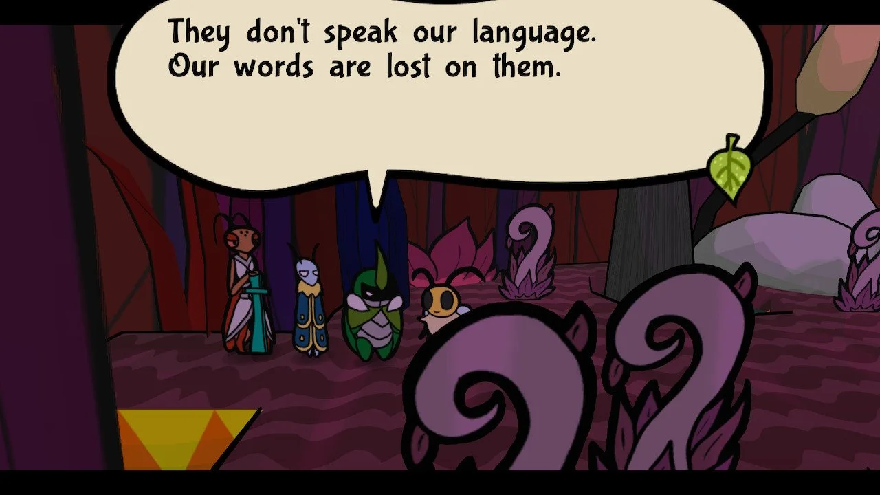 This is another regard in which Paper Mario’s polish shines above. While there are, on occasion, areas in Paper Mario that feel little confusing, it’s usually as simple as “Oh, I missed a door”. In Bug Fables, the nonlinear nature of the game is stifled by the game areas not being fun to explore, and the characters in the world not being fun to talk to. Most of them lack the charm of Paper Mario characters who all have a huggable cartoony goofiness to them. Bug Fables Characters in comparison are pokey, and unlikeable, with many being straight-up mean spirited or annoying.